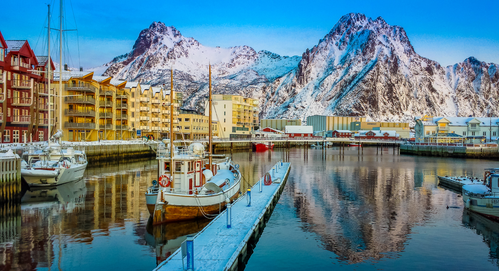 หมู่บ้านชาวประมงเก่าแก่นับพันปี บน ชายฝั่งทางใต้ของเกาะ Austvagoy ศูนย์กลางการเดินทางของหมู่เกาะโลโฟเทน Svolvaer มีสนามบินท่าเรือเฟอรี่เชื่อมเมืองต่าง ๆ เป็นจุดลงเรือล่องชมฟยอร์ดและปลาวาฬออร์ก้า